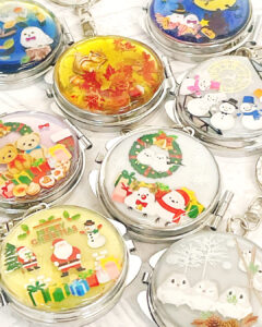 ご好評いただいている【レジンシールでつくる簡単可愛いミラーキーホルダー】です。